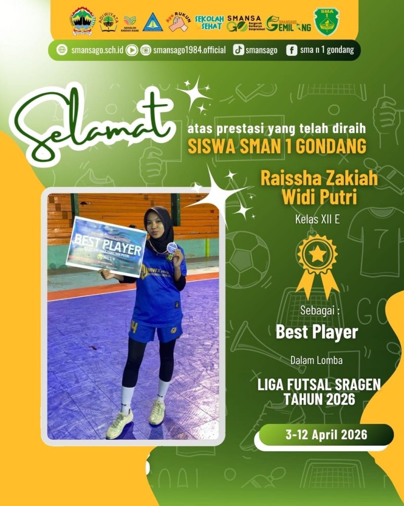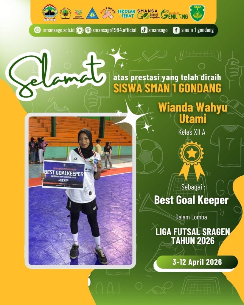 SRAGEN – Prestasi membanggakan kembali diukir oleh insan pendidikan dari SMAN 1 Gondang (Smansago). Shela…